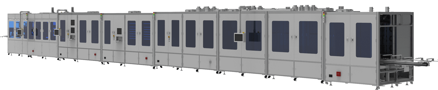适用于:本产线适用于笔记本电脑屏、电视机屏、车载一体屏等大尺寸显示屏的丝印、烘烤、在线检测等自动化生产作业。